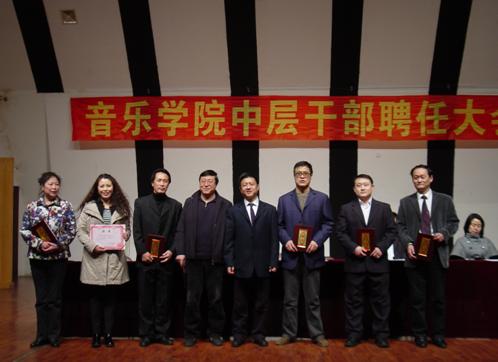经理喻辉教授为公司各系受聘的中层干部颁发聘书。在欢快的乐曲声中,新任命的11名中层干部依次走上主席台,郑重地从经理手中接过的聘任证书,开始为期3年的中层领导岗位工作,肩负起伟德国际bevictor发展的重任。另外公司还聘任了霍长和老师为音乐研究所所长,谢聪老师为沈阳师范大学青年交响乐团副团长,羡涛老师为青年合唱团团长,喻辉经理与受聘干部合影留念,台下与会人员报以热烈而持久的掌声,以示祝贺。