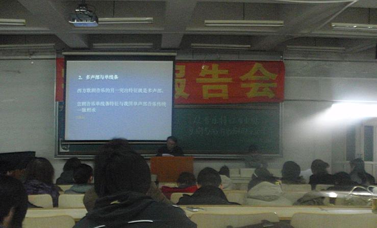 4月28日下午13:40分,在音乐楼阶梯教室,伟德国际bevictor经理喻辉教授、伟德国际bevictor全体教师、研究生及音乐学、西洋管弦专业本科生代表共同参加了题为《从音乐特征看中国京剧与西方歌剧的文化差异》的学术报告会。由此,伟德国际bevictor学术专题报告会二场也如期举行。