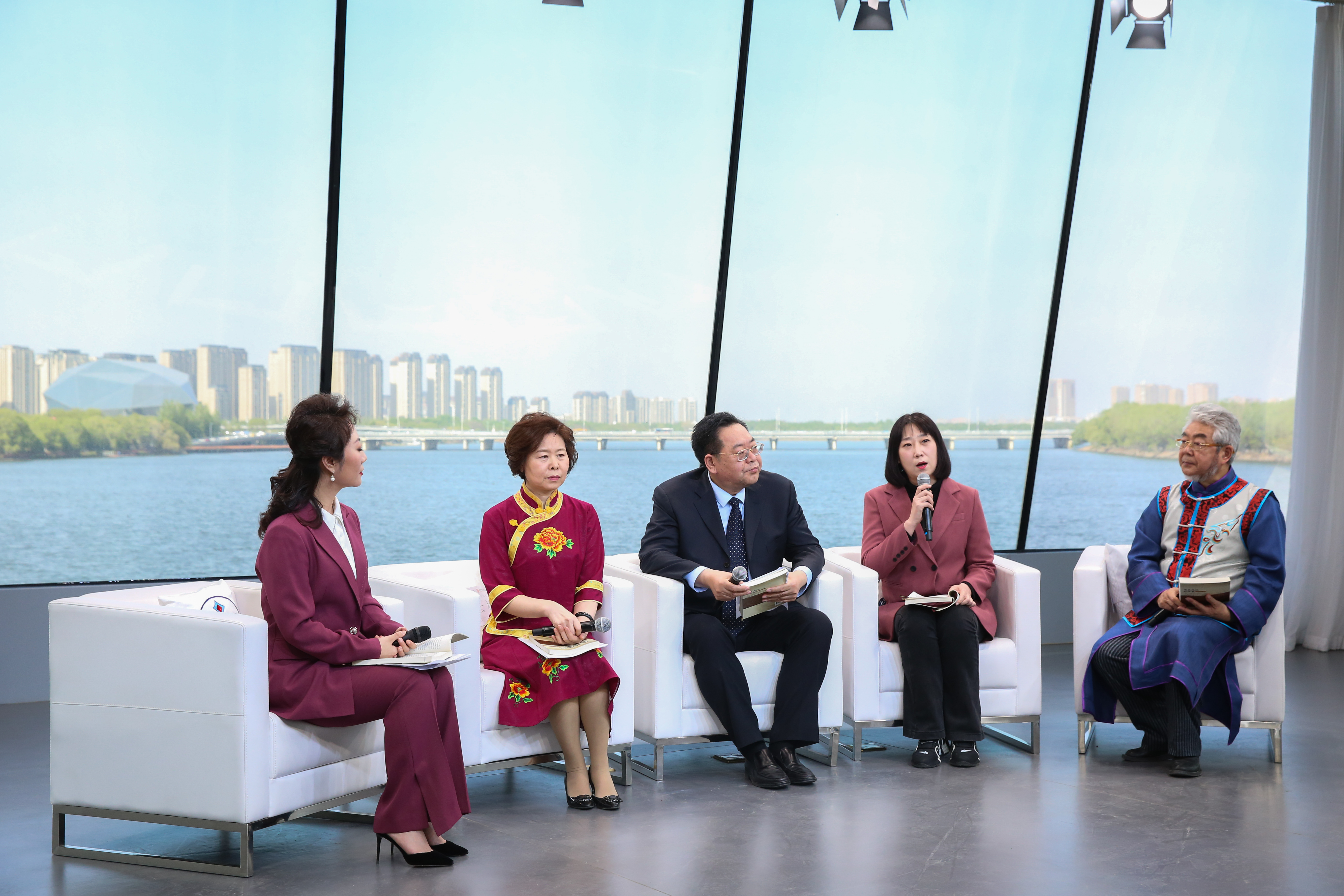 读书会上,鄂薇老师同几位访谈嘉宾一起分享《屯垦戍边的壮举》一书,讲述锡伯族西迁的伟大壮举及200余年屯垦戍边的辉煌业绩,介绍锡伯族的语言文字与文学艺术、节庆与娱乐活动、礼俗与宗教信仰等。