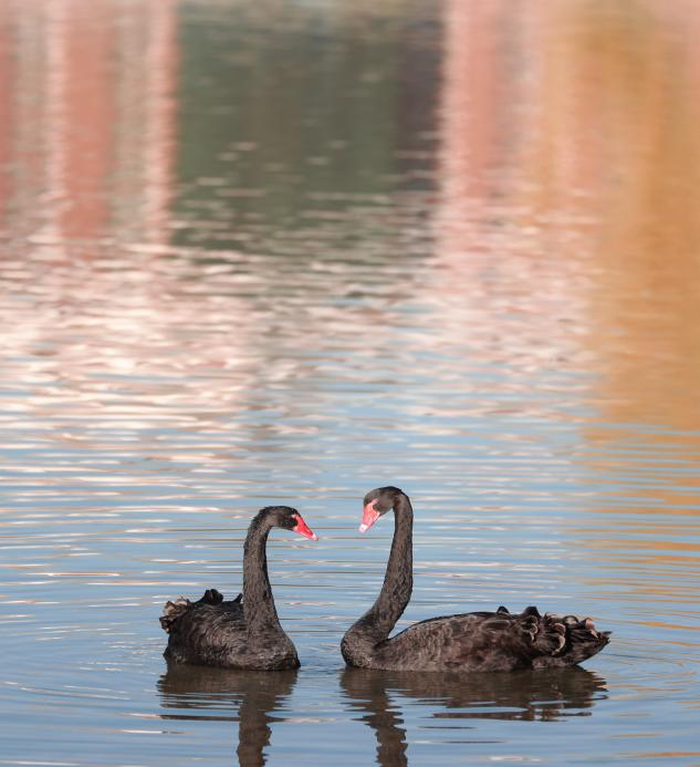 作品描述:夕阳下,在湖边散步,邂逅水中嬉戏黑天鹅,游戏的掌蹼,在湖上泛起一圈破碎的涟漪,衔一嘴艳丽,披一袭黑翼;流转间又是一次新的赴约。追寻着温暖的目光,是黑天鹅的交汇,是童话故事的隐约。