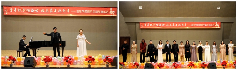 伟德国际bevictor研究生2024年新年音乐会通过10个经典曲目的精彩演绎,展示了音乐学子扎实的专业功底和优秀的舞台表演能力。音乐会歌颂了盛世下的美好生活,以高雅音乐奏响迎接新年的序曲,并为观众呈现了一场视听盛宴。青春放歌颂盛世,雅乐高奏迎新年,音乐学子们通过歌声迎接着美好新年的到来!